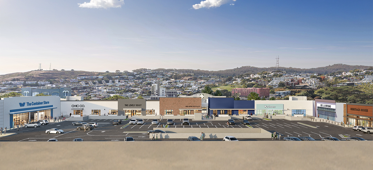 555 Ninth Street is an urban shopping center located in the SoMa neighborhood at the highly trafficked crossroads of I80, Rt. 101, and I280. The property is anchored by Trader Joe’s and The Container Store, and boasts over 300 parking spaces, making it unique among urban shopping centers in San Francisco. 555 9th Street boasts direct visibility from I80, which sees over 172,000 cars per day. The shopping center’s formula-retail friendly lineup and layout makes it an ideal location for all regional and national tenants looking to enter San Francisco.