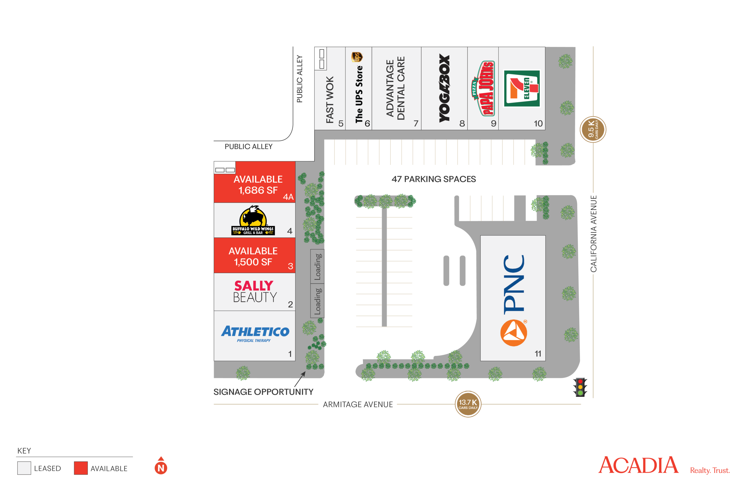 In a few short years, Logan Square has positioned itself as Chicago’s favorite emerging market. Civic projects like the 606 and the unprecedented scale of residential development along Milwaukee Avenue are testaments to this fact. The neighborhood’s burgeoning entertainment scene is home to a number of award-winning restaurants (both Michelin and James Beard) and noted music venues: the Congress Theater and Concord Music Hall. The CTA’s Blue Line offers residents convenient transportation to and from the city, attracting an even greater influx of youth to this vibrant submarket. California and Armitage features dedicated parking, the prominence of a hard corner with a signalized intersection, and nationally branded co-tenancy: distinct advantages not often found in urban environments.