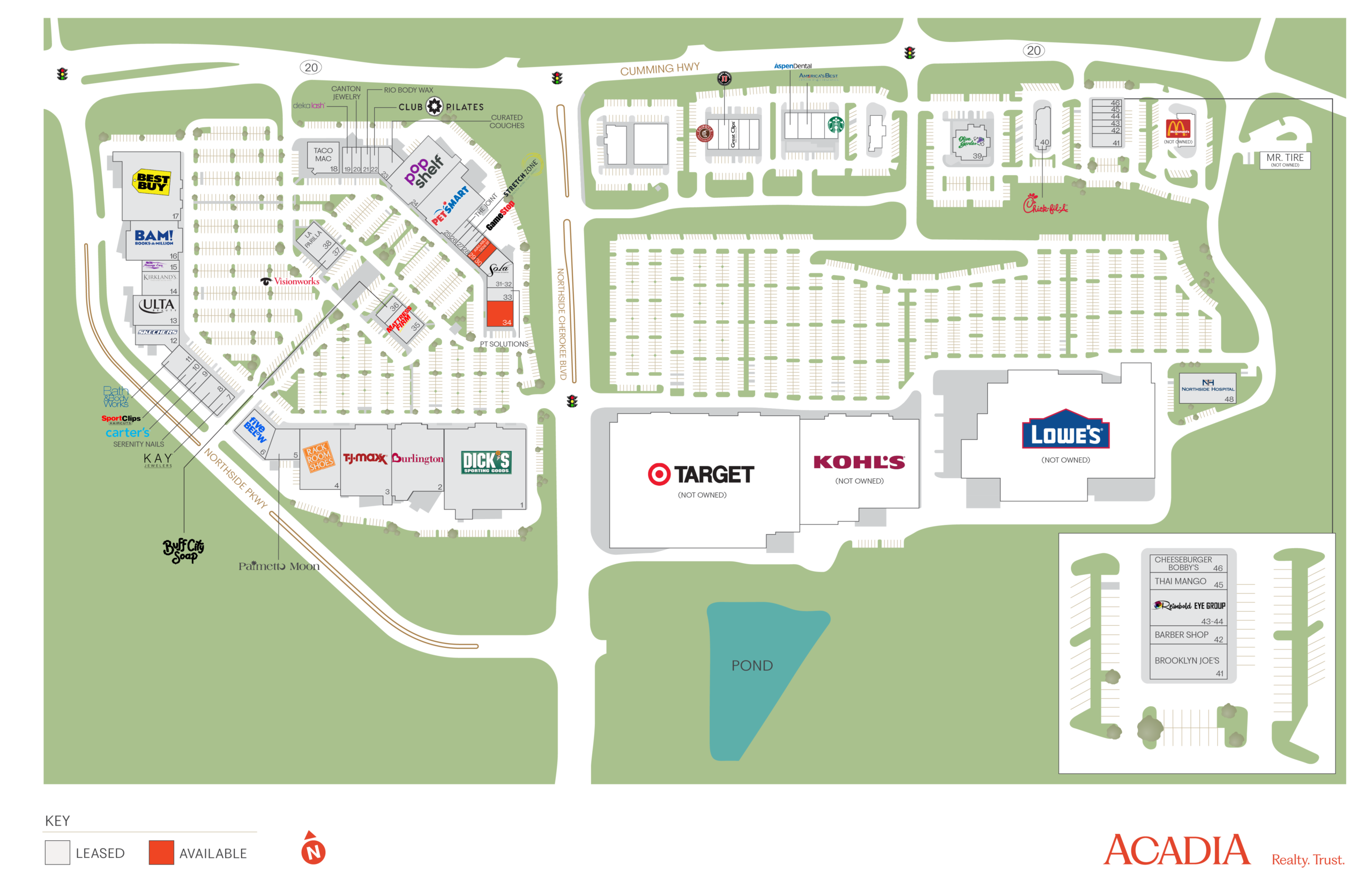 Canton Marketplace is a best-in-class, super-regional power center featuring a dominant lineup of nationally recognized tenants including Dick’s Sporting Goods, Burlington, Rack Room Shoes, Pop Shelf, TJ Maxx, Petsmart and Ulta and shadow anchored by Lowe’s, Kohl’s and one of the top Target locations in the Atlanta MSA. Located in Cherokee County at the bustling interchange of GA 20/Cumming Highway and Interstate 575, which see about 100,000 vehicles per day.