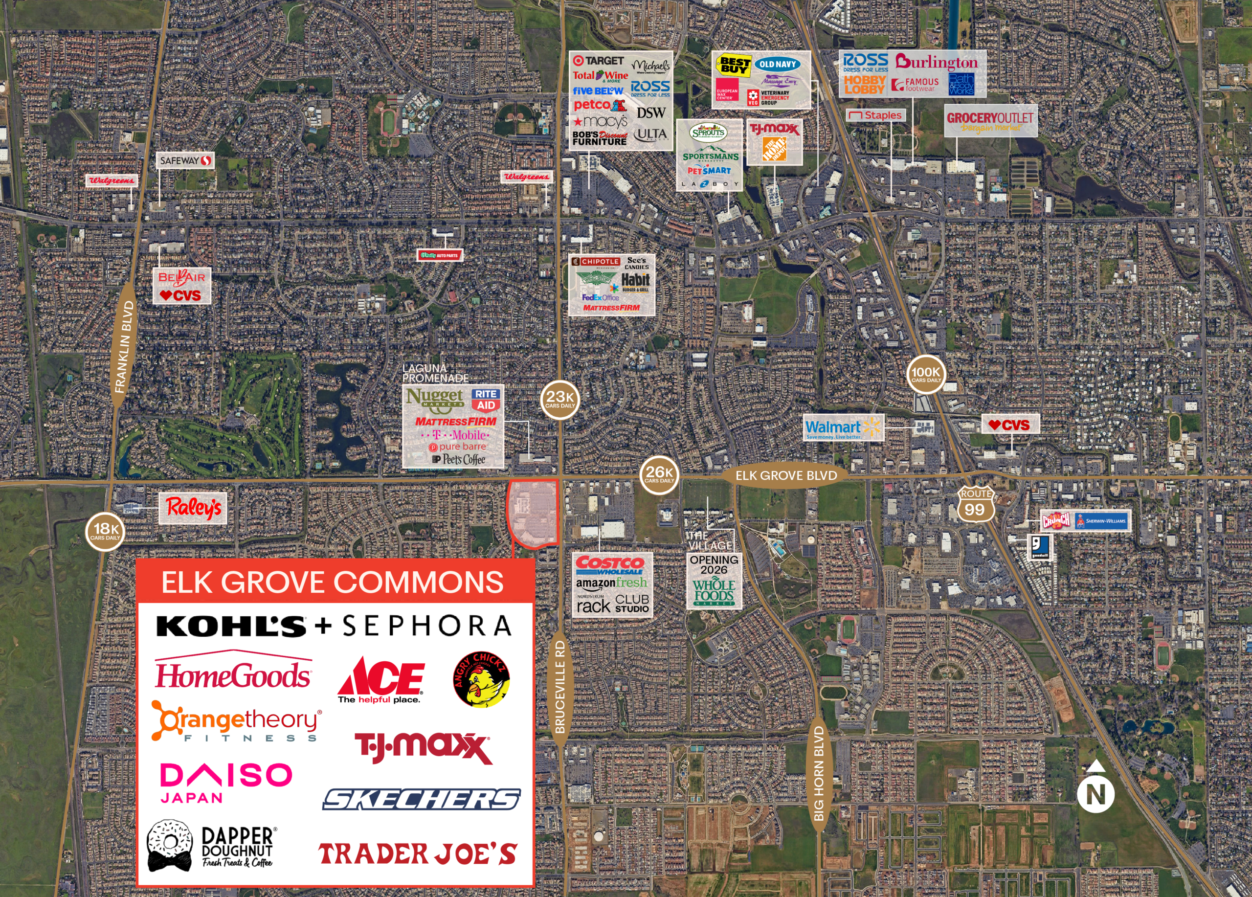 Elk Grove Commons is the dominant retail center in the region and is anchored by a high performing Trader Joe’s, HomeGoods, and Kohl’s. The Property serves an affluent and dense trade area with average household incomes of approximately $100,000 and a population of more than 160,000. Strategically located on the hard corner of Elk Grove Boulevard and Bruceville Road, Elk Grove Commons benefits from excellent curb appeal and visibility to more than 71,000 cars passing by the Property daily. The Property provides customers the complete shopping experience featuring a dominant anchor lineup.