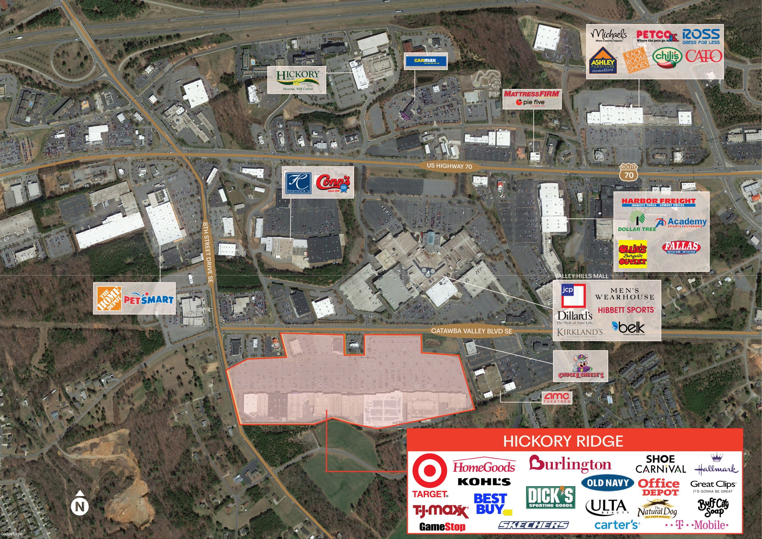 Hickory Ridge is the dominant regional power center in Hickory, North Carolina. Located along Route 70, the shopping center’s impressive tenant lineup include Target, Kohl’s, Best Buy, Dick’s Sporting Goods, Burlington, TJ Maxx, Old Navy, Office Depot and Ulta.
