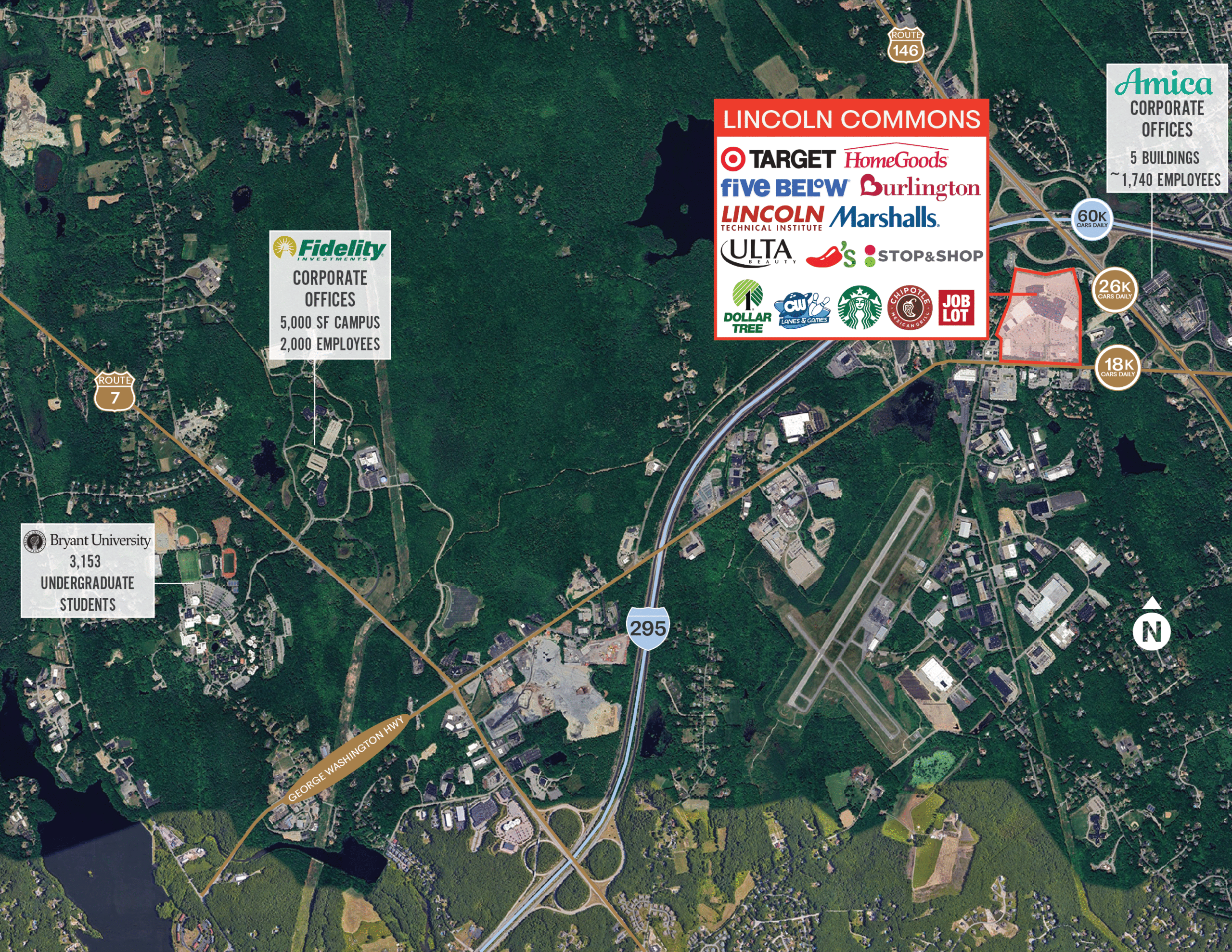 Lincoln Commons is a dominant daily needs shopping destination in the affluent Lincoln, RI suburb. The Center benefits from its accessibility to the heavily trafficked intersection of I-295 & Route 146 (42,800 VPD) and position on Route 116 (20,000 VPD). Tenants such as Target, Stop & Shop, Burlington, HomeGoods, Marshalls and Five Below draw shoppers throughout Lincoln and beyond.