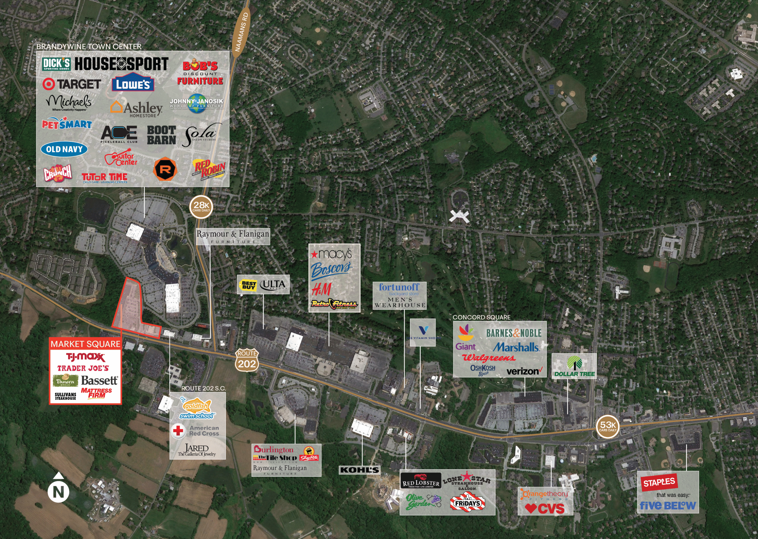 Market Square is located in the Brandywine Hundred Area of Wilmington, Delaware, approximately 20 miles south of Philadelphia, Pennsylvania. The property occupies the northeast corner of the intersection of U.S. Route 202 and Brandywine Parkway. Market Square is adjacent to the Brandywine Town Center power center and is a convenient shopping destination for residents of Delaware, Pennsylvania and New Jersey due to the benefit of Delaware being sales tax free.