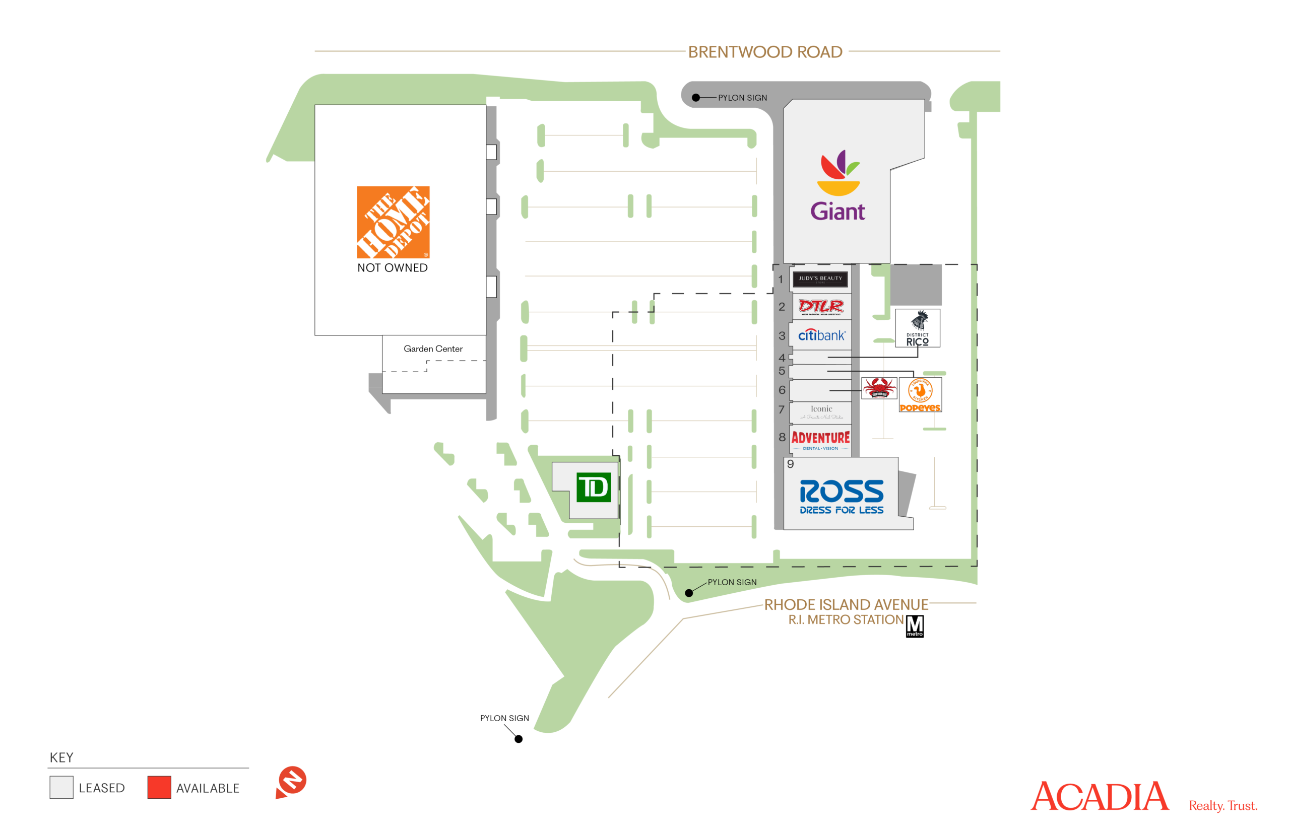 Rhode Island Place is located on US Highway Route 1 (Rhode Island Avenue), adjacent to the Metrorail’s Red Line Station that is just two stops from Union Station in Washington, D.C. The property is the established, dominant shopping destination in the market and is shadow-anchored by The Home Depot and Giant.