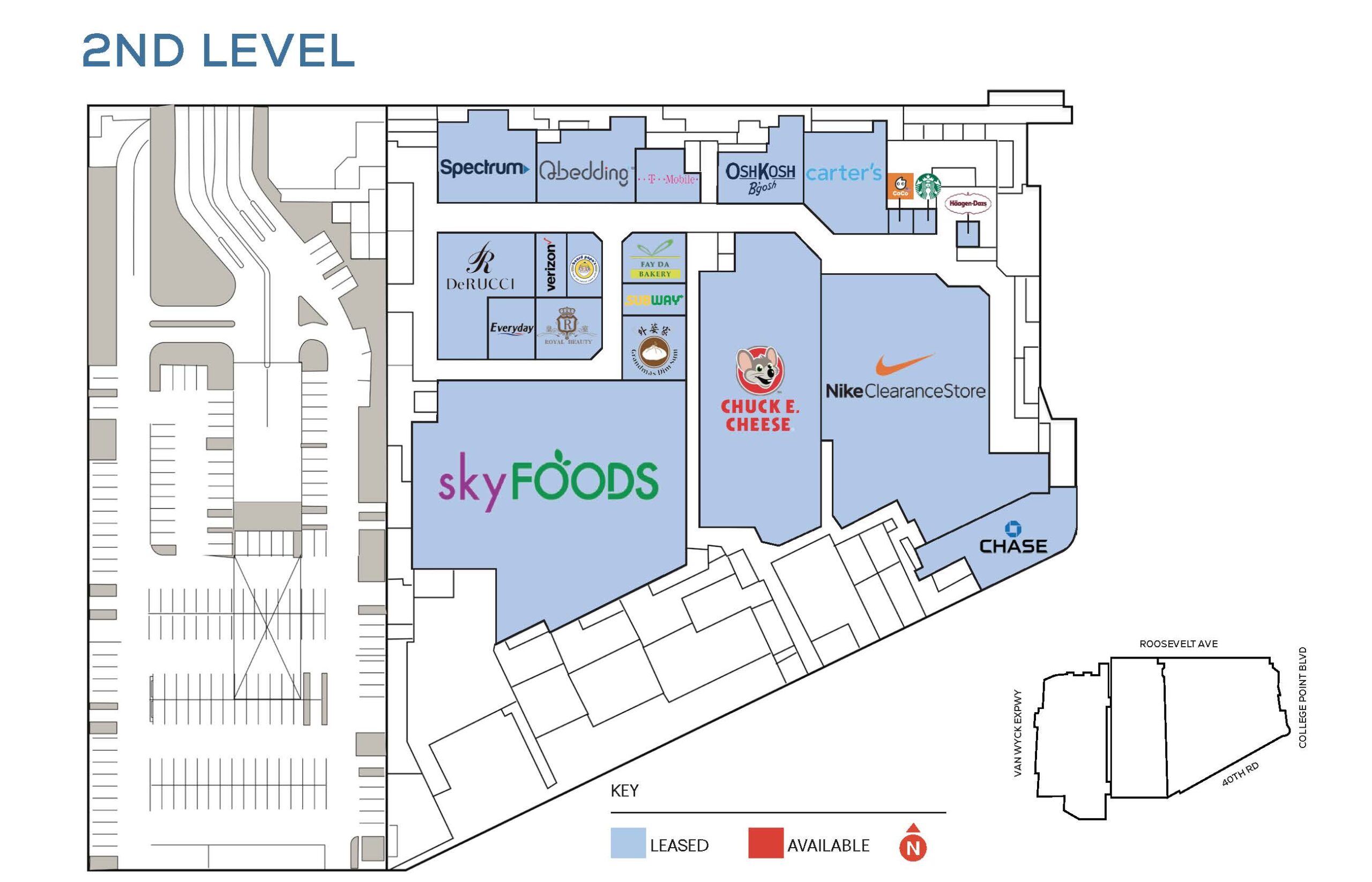 The Shops at Skyview is a dominant mixed-use development, with world class retail, luxury condominiums and destination medical offices. Retailers include Target, Uniqlo, Nike, Sephora, Sky Foods and many more! This property is strategically positioned in the heart of Flushing with convenient access from the Van Wyk Expressway and walking distance from the U.S. Tennis Center, Citi Field and the newly announced Willets Point Development. With 12 million annual visitors, The Shops at Skyview is a favorite among local and regional shoppers.