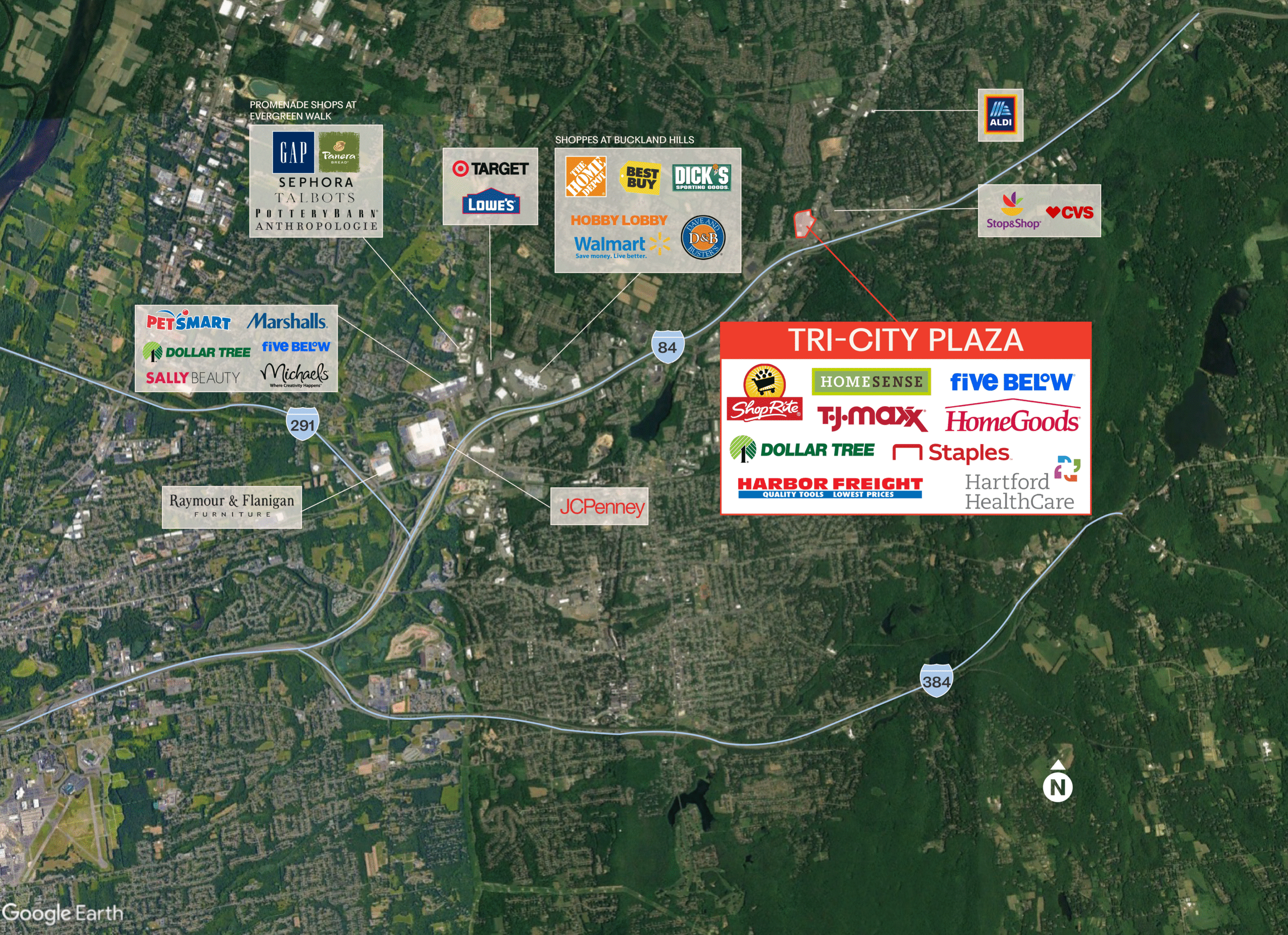 Tri-City Plaza is situated northeast of Hartford and co-tenants include HomeSense, ShopRite, Dollar Tree, Five Below, Staples, T.J.Maxx, HomeGoods, Harbor Freight Tools and Hartford Healthcare.