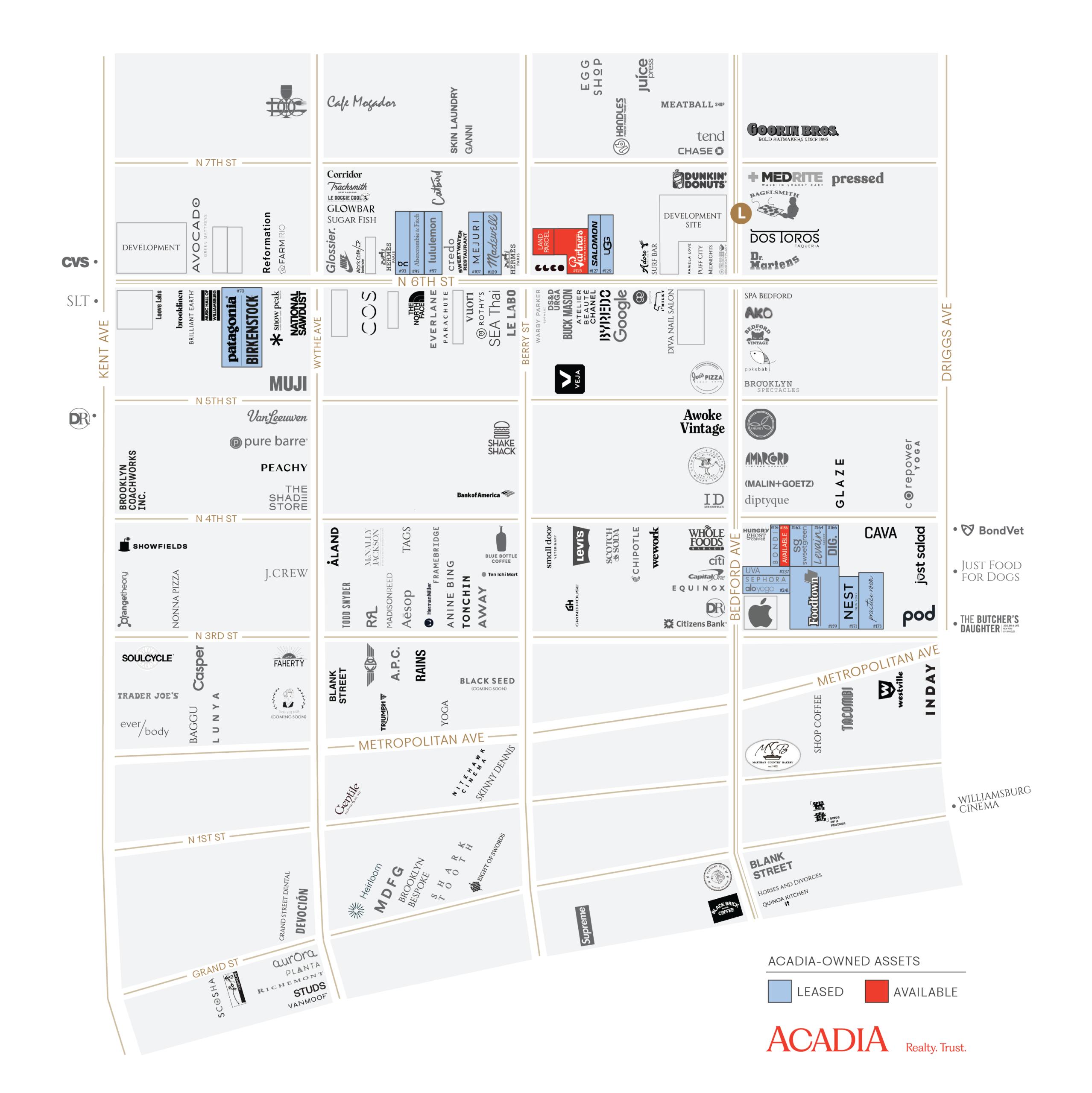 Williamsburg is an influential hub for fashion, music, art, food and more. The neighborhood draws the young and fashionable to its boutiques, trendy cafes and popular restaurants. The first stop on the L train, Williamsburg is home to retailers like Apple, Whole Foods, Nike, Madewell, Buck Mason, and Supreme, and cafes and restaurants like 12 Chairs, Partners Coffee, Devocion, and Sunday in Brooklyn. Developments throughout the area and waterfront like the Domino Sugar Refinery continue to draw locals and tourists to this vibrant neighborhood.
